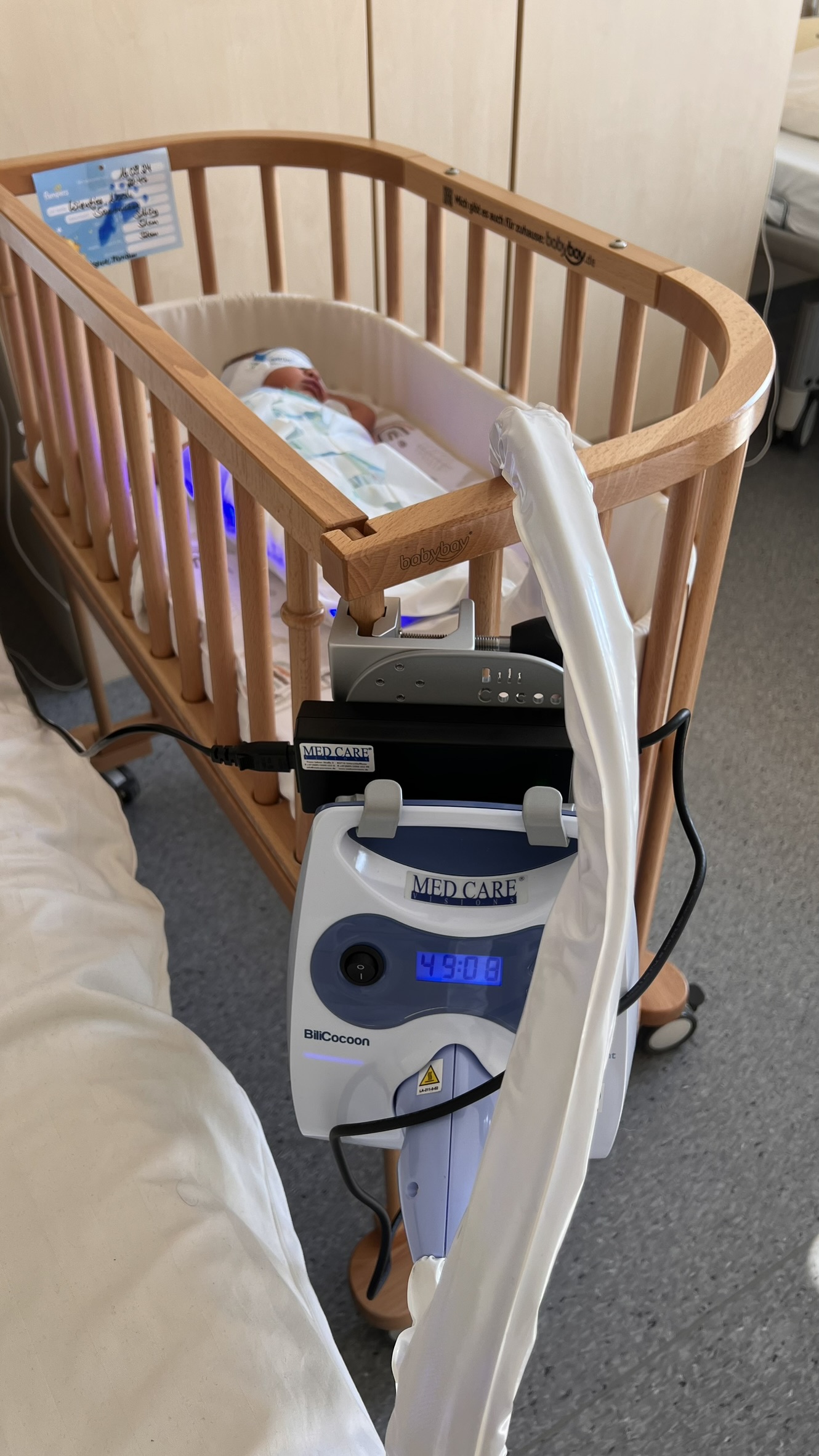 Bei dem BiliCocoon handelt es sich um eine Art Schlafsack mit dem eine kontinuierliche Bestrahlung des Neugeborenen bei phototherapiepflichtiger Hyperbilirubinämie gewährleistet werden kann. Immer wieder werden Kinder geboren, die aufgrund Blutgruppenunverträglichkeiten einer kontinuierlichen Phototherapie bedürfen. Dem gegenüber stehen oftmals die Bedürfnisse der Mutter, ihr Kind auf dem Zimmer zu betreuen bzw. zu stillen (im Hinblick auf die Perspektive des stillfreundlichen Krankenhauses ein sehr wichtiger Aspekt).